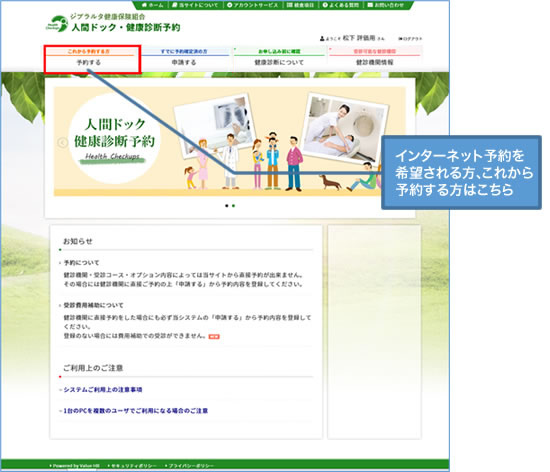 人間ドック・特定健康診査の申し込み方法 受診医療機関にインターネットで予約する場合