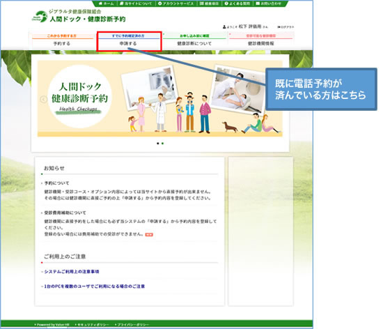 人間ドック・特定健康診査の申し込み方法 受診医療機関にすでに電話で予約している場合