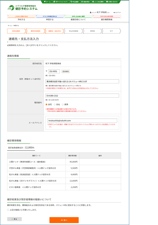 - ※受診日を経過した場合は、②のお手続きができないため、以下の(株)バリューHRカスタマーサービスへご連絡をお願いいたします。